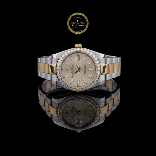 Two Tone Stainless Steel and Gold Diamond Bezel Luxury Watch This elegant two-tone luxury watch exudes...