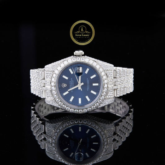 White Gold Fully Iced-Out Diamond Watch with Deep Blue Dial Bold, elegant, and undeniably captivating,...