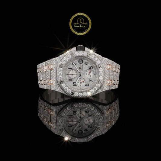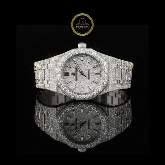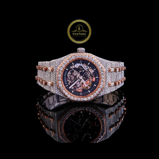 Luxury Skeleton Fully Iced Diamond Automatic Watch This exquisite Royal Oak Skeleton is a masterpiece of...
