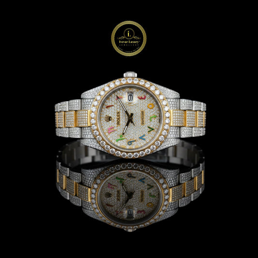 Two-Tone Diamond Set Watch with Multicolored Arabic Numerals This luxurious timepiece radiates opulence with its fully...