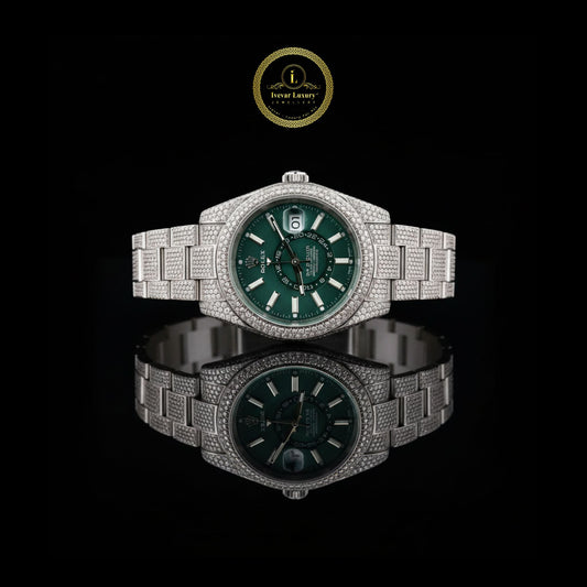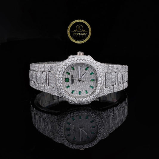Luxury Diamond Watch – Complete Iced-Out Design with Emerald Accents for Supreme Elegance Experience the...