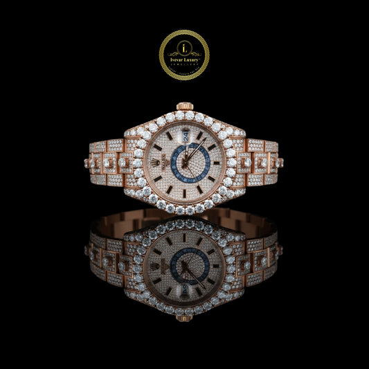 The Rose Gold Tempest: Iveyar Luxury Diamond Pave Timepiece This image showcases an incredibly luxurious...