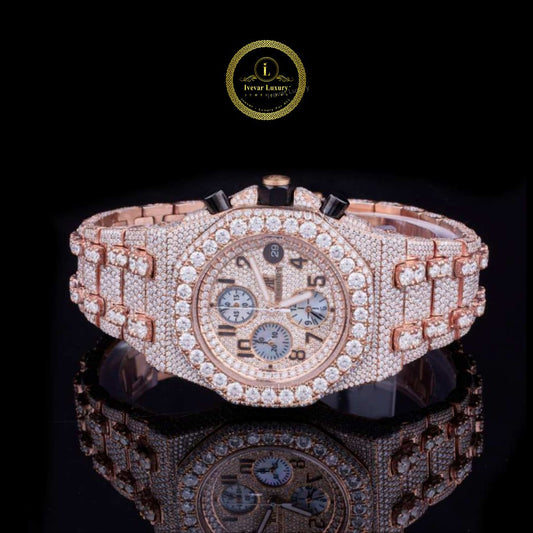 Regal Rose Gold Diamond Chronograph Luxury Timepiece This exquisite timepiece showcases a striking blend of rose...