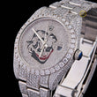 Exquisite Fully Moissanite Diamond-Encrusted Luxury Watch with Intricate Artistic Dial Design and Date Display