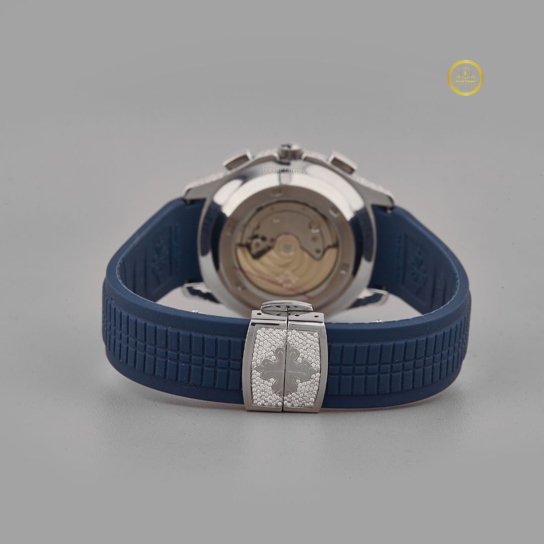 Luxury Diamond-Studded Blue Rubber Strap Watch