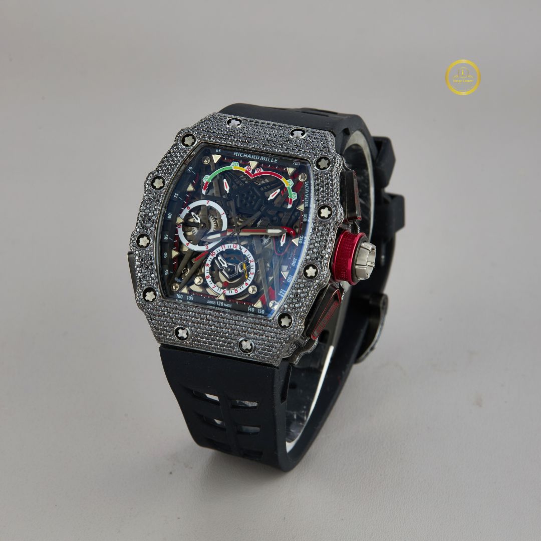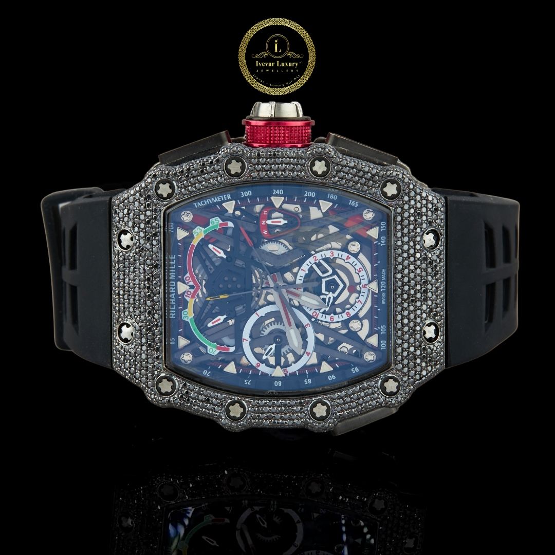 Half-Iced Lab Diamond Watch with Versatile Rubber Band