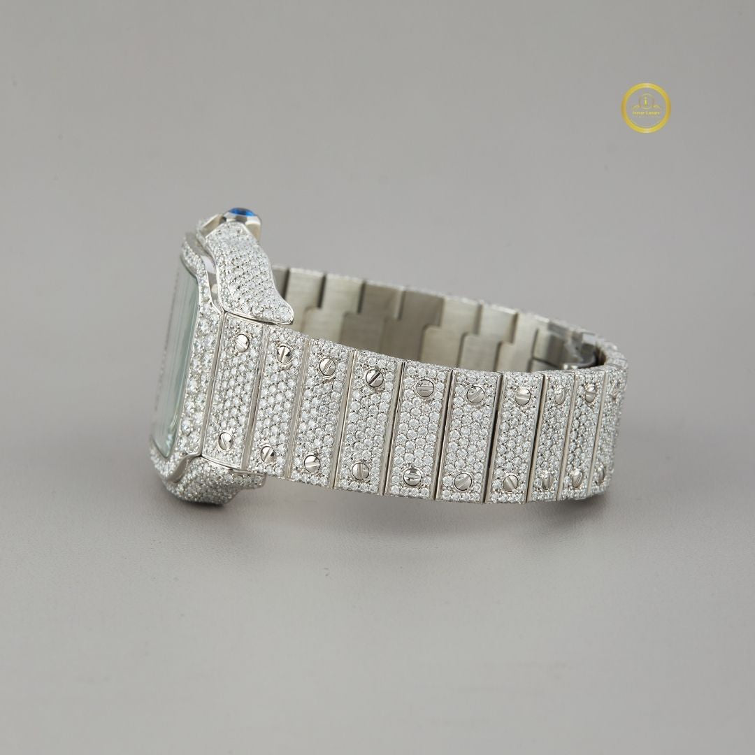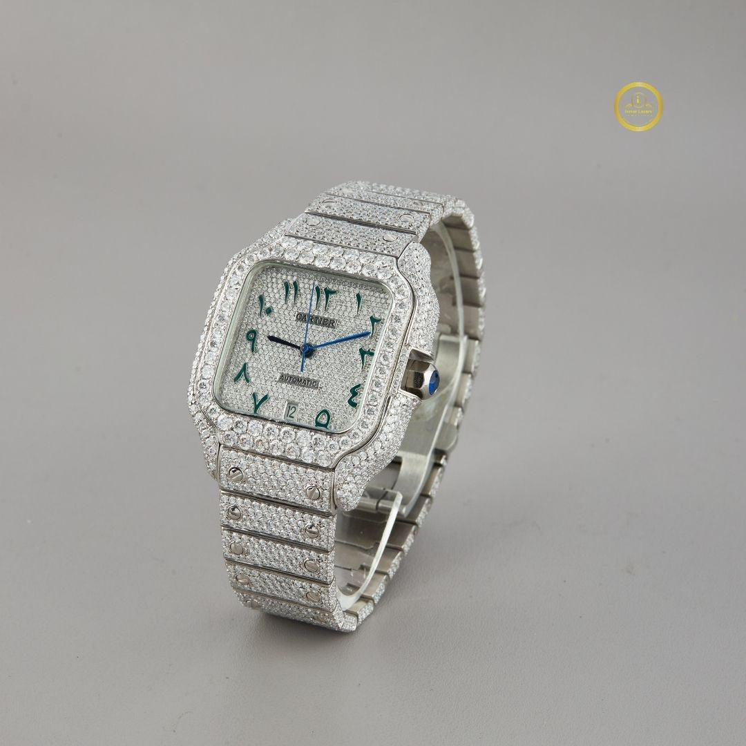 Stunning Lab Grown Diamond-Set Luxury Watch with Emerald Green Numerals and Pave Dial Design