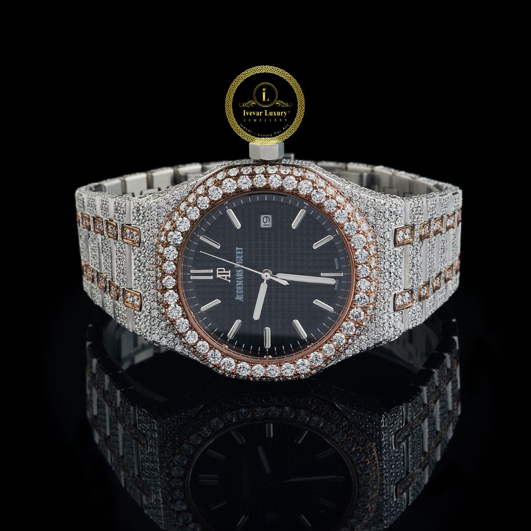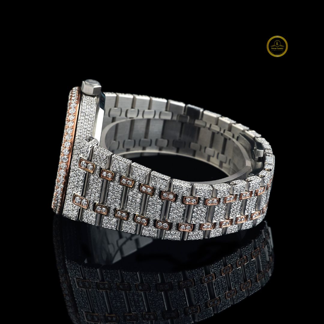 Exquisite Two-Tone Missonite Diamond-Encrusted Timepiece with Full Pavé Detailing Watch