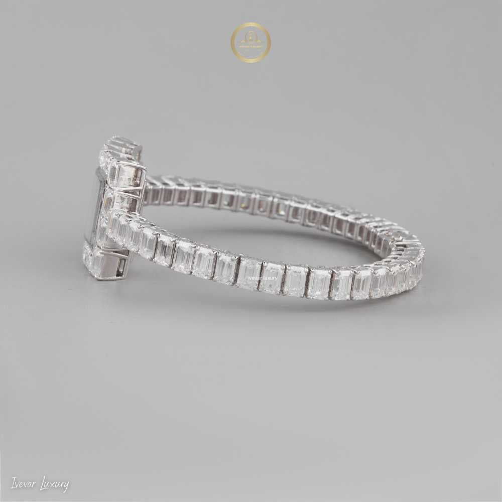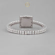 This mesmerizing Moissanite diamond watch captures the perfect harmony of geometry and brilliance. Featuring a refined square dial encrusted with baguette and emerald-cut diamonds, the design radiates symmetry, luxury, and timeless appeal. Each diamond is hand-set with precision to create a flawless, mirrored surface that reflects light from every angle. The bracelet continues the diamond pattern seamlessly, forming a continuous river of radiance around the wrist. Crafted with ethical, Moissanite diamonds, this watch celebrates sustainable opulence while maintaining the grandeur of fine haute horlogerie. Sleek, modern, and undeniably regal it’s not just a timepiece but an enduring symbol of elegance and power.