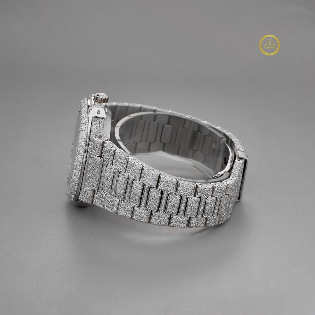 Experience the brilliance of true craftsmanship with the Round Vision Diamond Watch from Ivevar Luxury. This fully iced-out masterpiece radiates opulence, featuring a precision-set diamond case and bracelet that shimmer from every angle. The dial is enhanced with elegant emerald green hour markers, adding a striking contrast to the all-diamond design. Meticulously handcrafted by master jewelers, this timepiece symbolizes prestige, success, and refined taste. Whether for an elite event or personal collection, this watch redefines modern luxury — turning every second into a statement of pure brilliance.