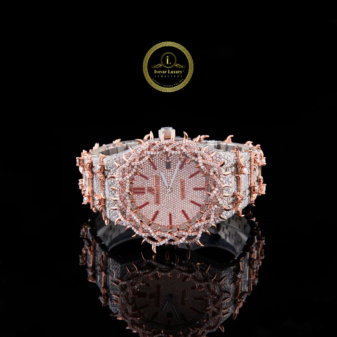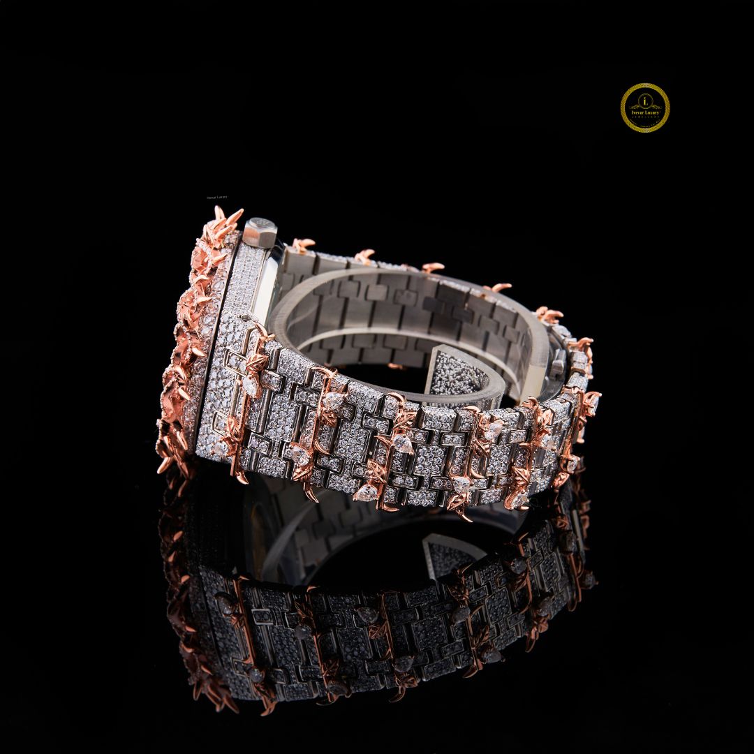 Fully Iced-Out Diamond Skeleton Luxury Watch with Rose Gold Accents – Bold Statement Timepiece for Men