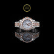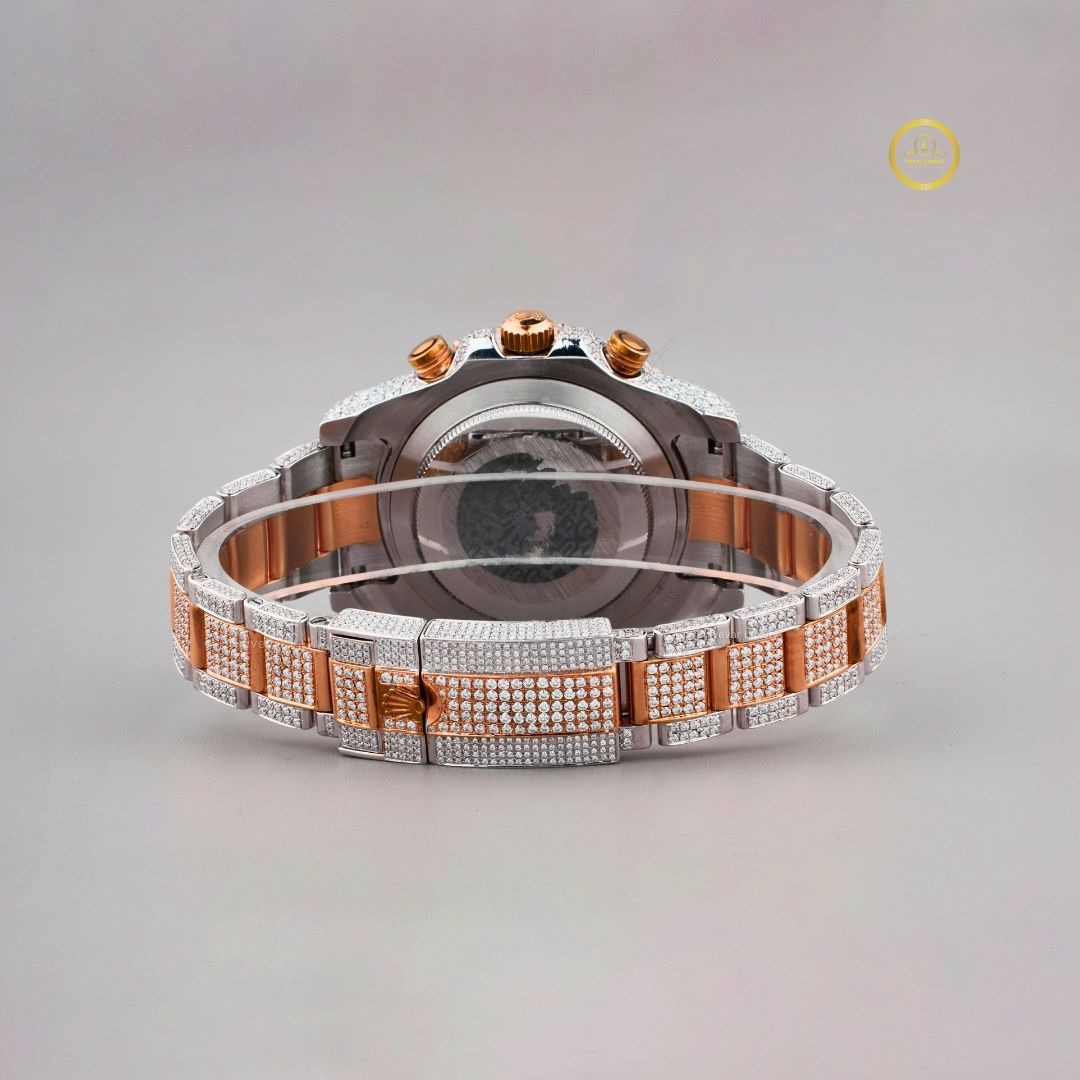 Luxurious Rose Gold and Silver Lab Diamond-Embellished Chronograph Watch with Intricate Pave Setting and Bold Statement Bezel