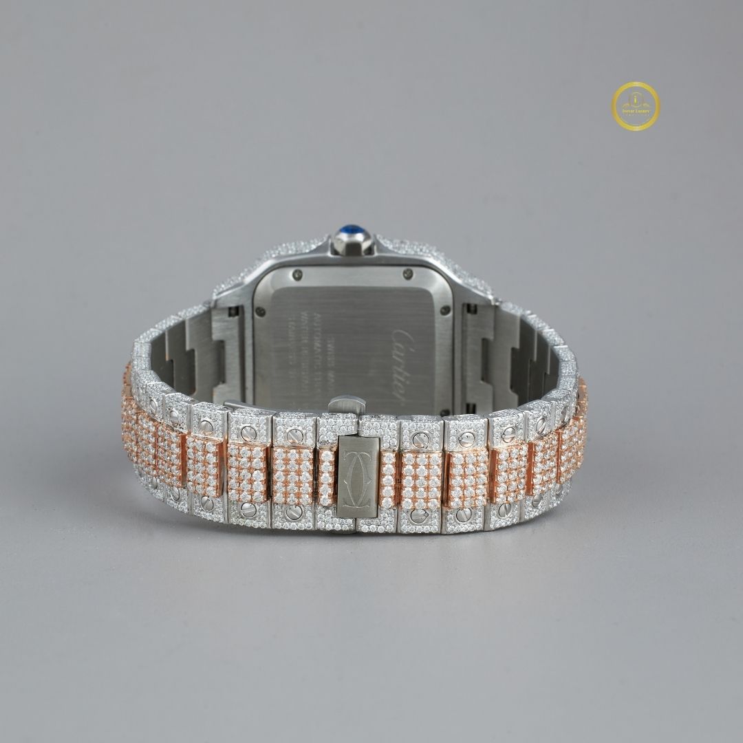 Exquisite Two-Tone Moissanite Diamond-Studded Luxury Timepiece with Roman Dial and Paved wristwatch