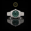 Prestige Iced-Out Lab Diamond Silver Watch with Bold Green Face and Date Display For Men