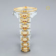 Exquisite Gold and Silver Moissanite Diamond-Studded Luxury Watch with Pink Baguette Markers, Artistic Dial, and Bow-Link Bracelet Design