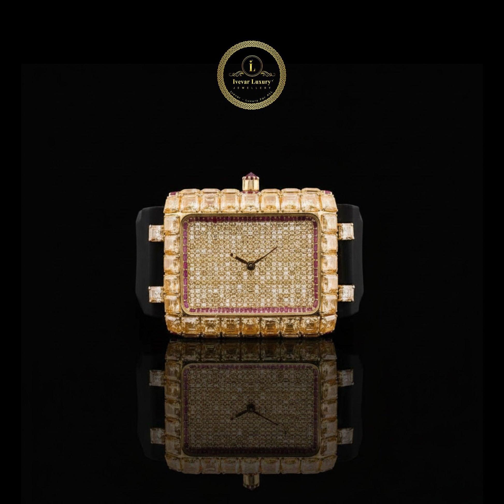 Experience the brilliance of unmatched craftsmanship with Ivevar Luxury’s Baguette gold diamond watch, a masterpiece that defines timeless sophistication. Meticulously encrusted with Moissanite diamonds, this stunning timepiece radiates brilliance and prestige from every angle. The bold rectangular face, encased in gleaming gold, reflects the perfect balance of modern artistry and classic luxury. Designed for those who embrace confidence and individuality, it is more than just a watch — it’s a statement of power, style, and refinement. Whether worn at grand events or intimate occasions, this piece embodies elegance that never fades, making it the ultimate reflection of your distinguished taste and Ivevar Luxury’s signature excellence.