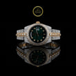 Prestige Emerald Green Dial Moissanite Diamond-Studded Two-Tone Gold and Silver Luxury Watch with Baguette Bezel and Date Display