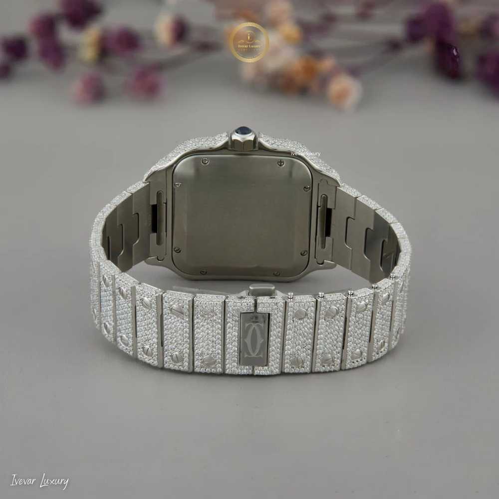 Every element — from the Roman numeral detailing to the meticulously polished bracelet — reflects uncompromising craftsmanship and timeless artistry. The contrast between the icy diamonds and the rich blue tone creates a visual harmony that commands admiration.