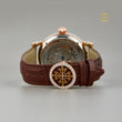 Premium Mechanical Watch with Diamond Accents & Brown Leather Band