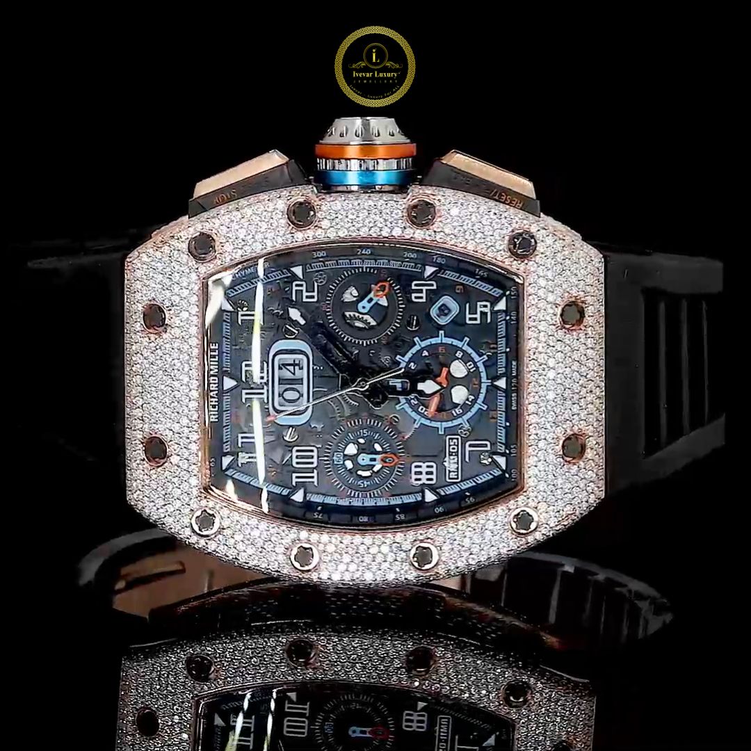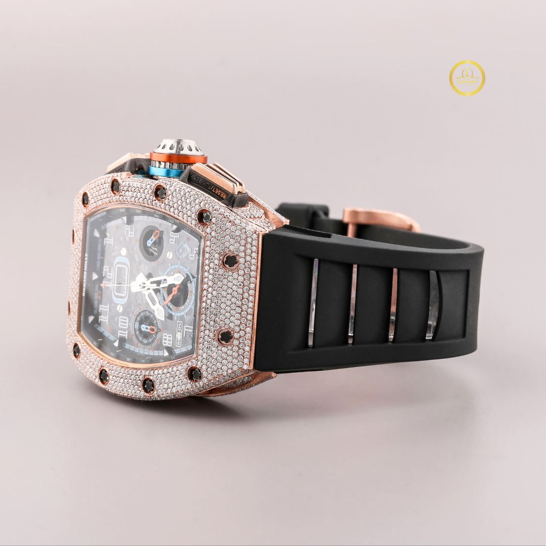 The Perfect Balance Half Iced Lab Diamond Watch with Comfortable Rubber Band