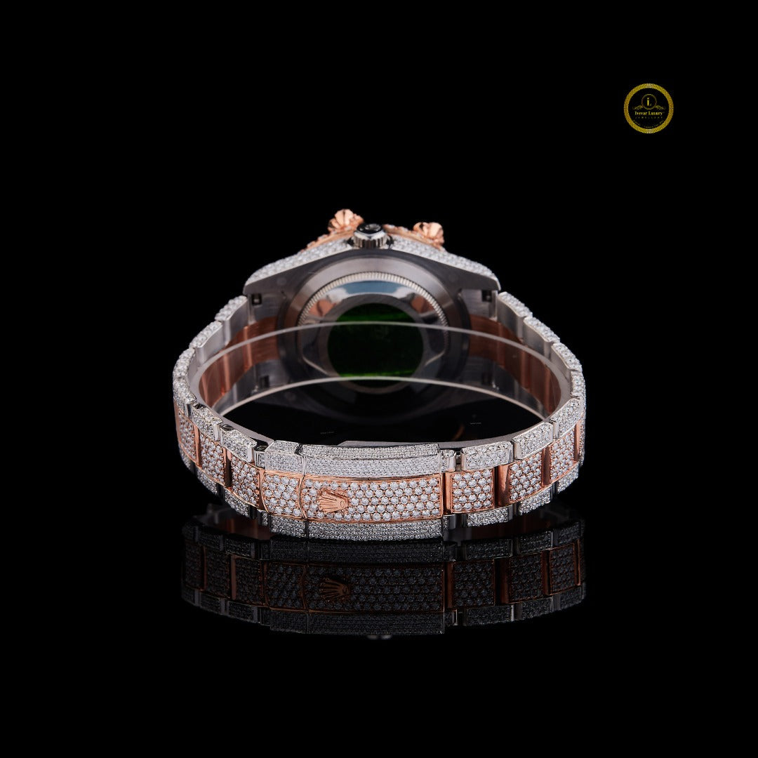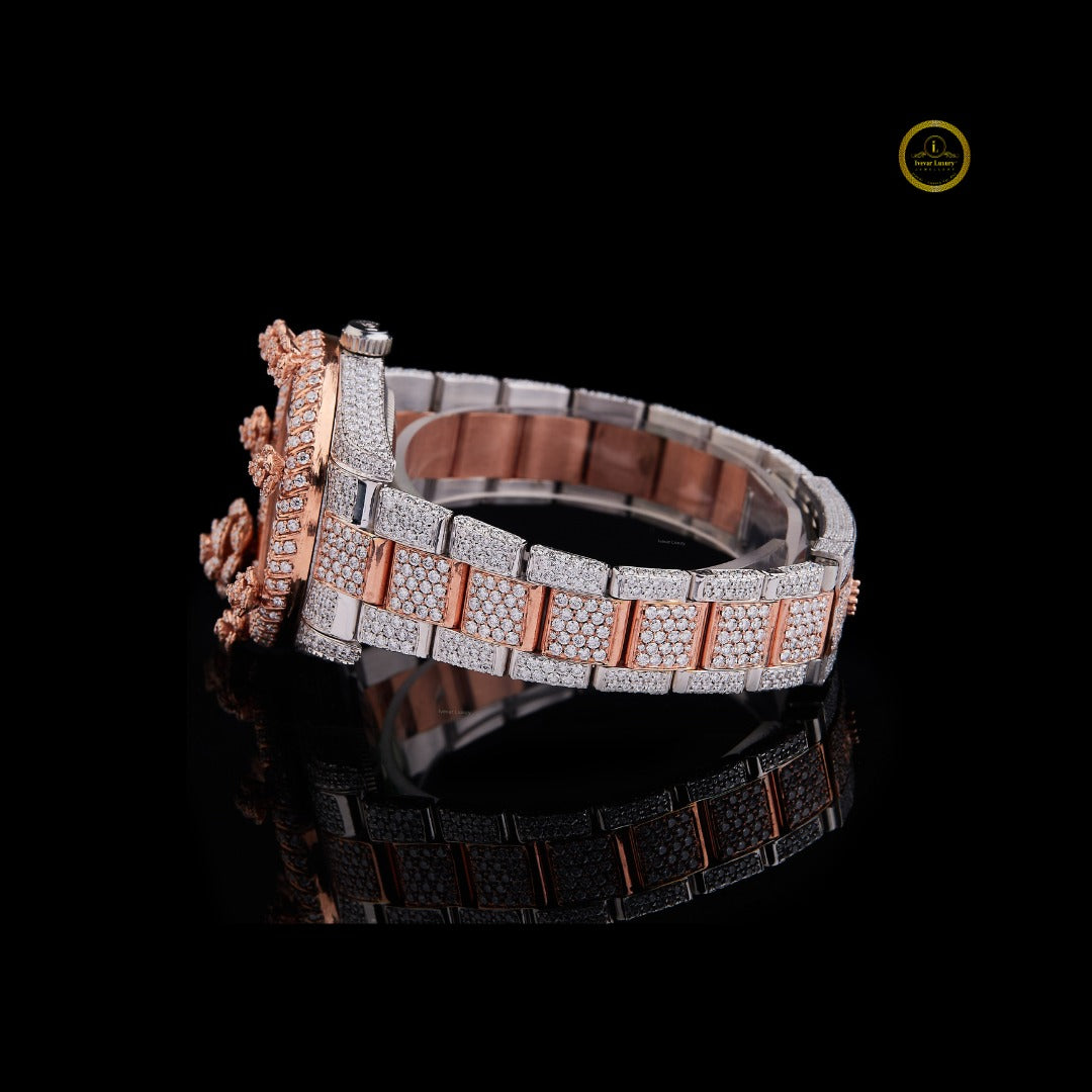 Luxury Rose Gold Iced-Out Diamond Watch with Custom Floral Bezel Design