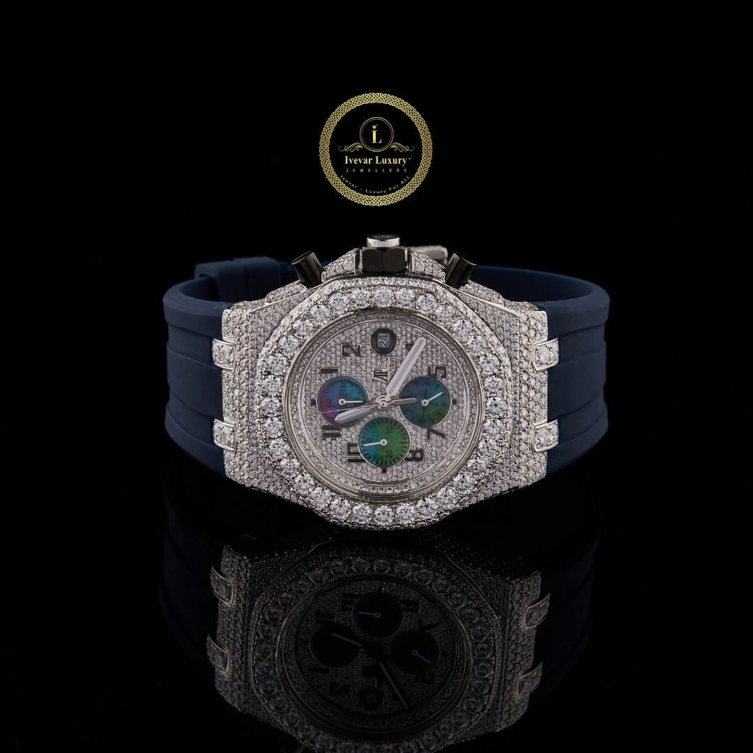 Ivevar's Ice & Ocean - Half Iced Diamond Watch with Vibrant Blue Rubber Strap