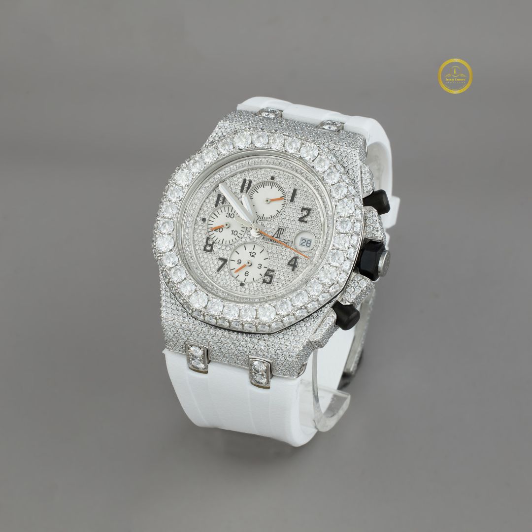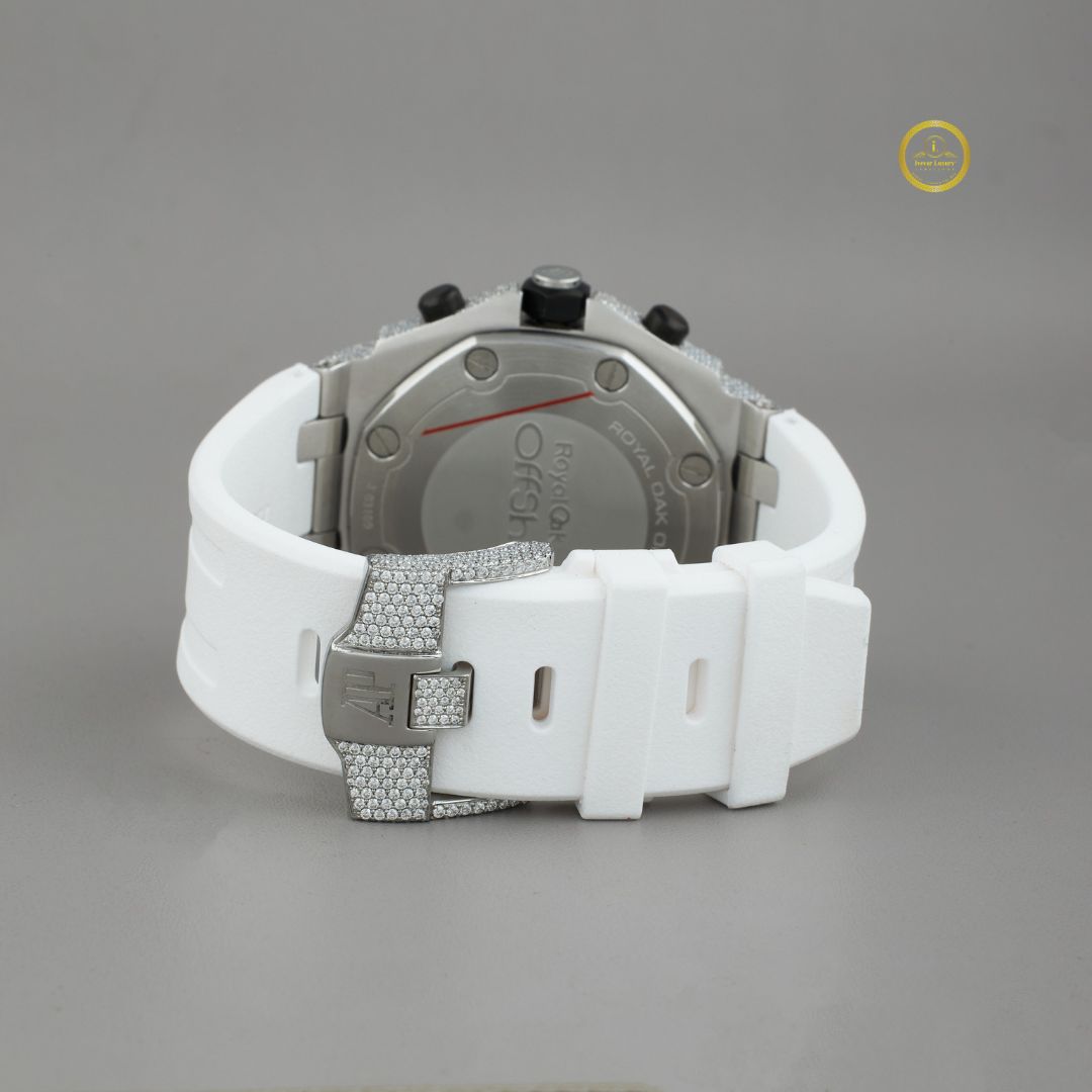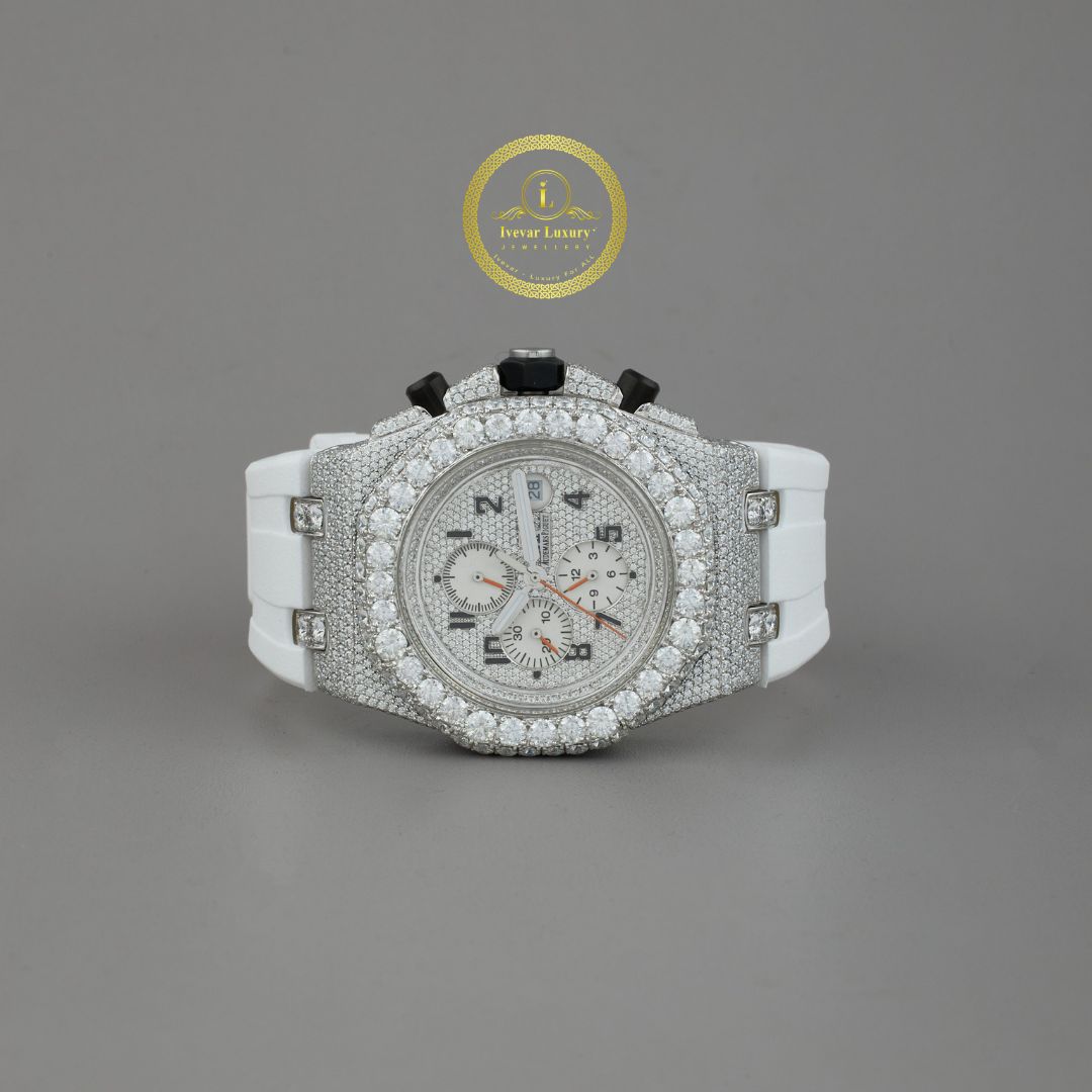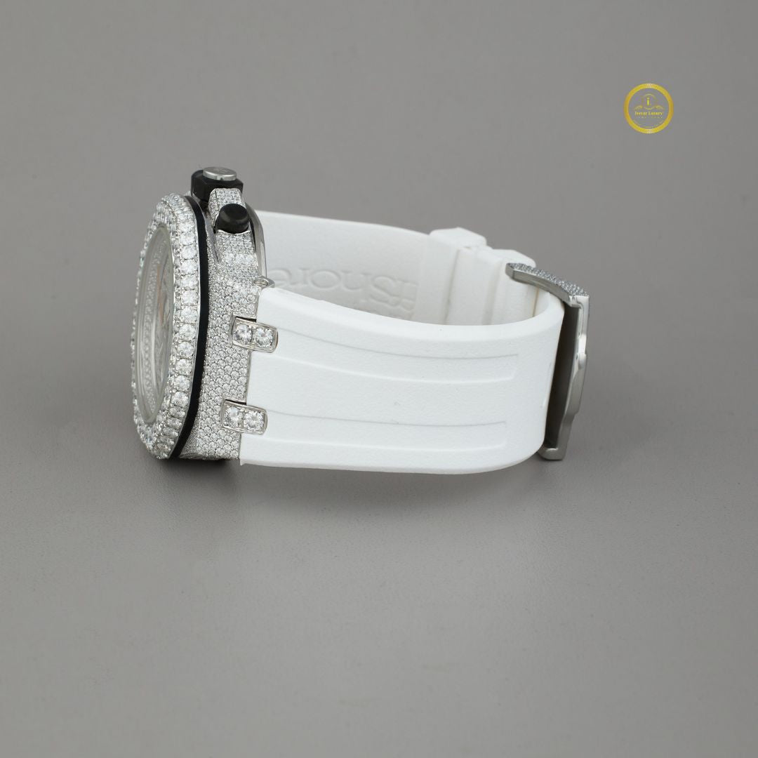 White Rubbur band With half Ice Out in Moissonite Diamond by Ivevar.