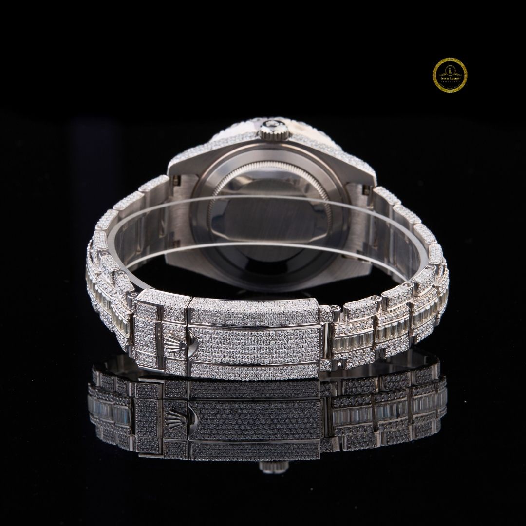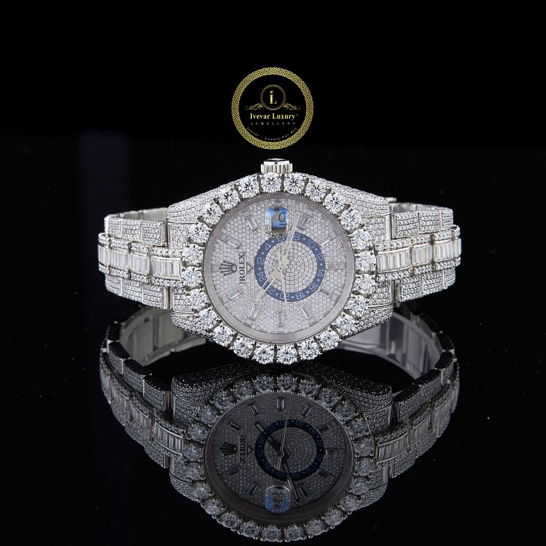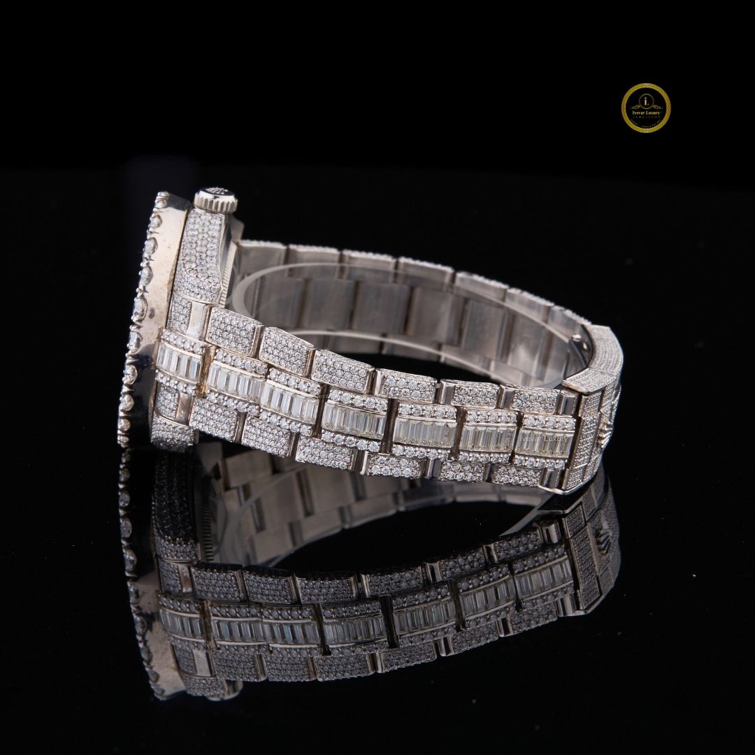 IVEVAR Iced Out Silver Watch - Moissanite Diamond Men's Watch with Silver Plated Band
