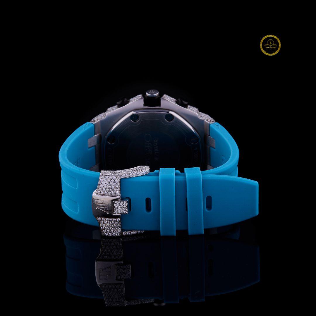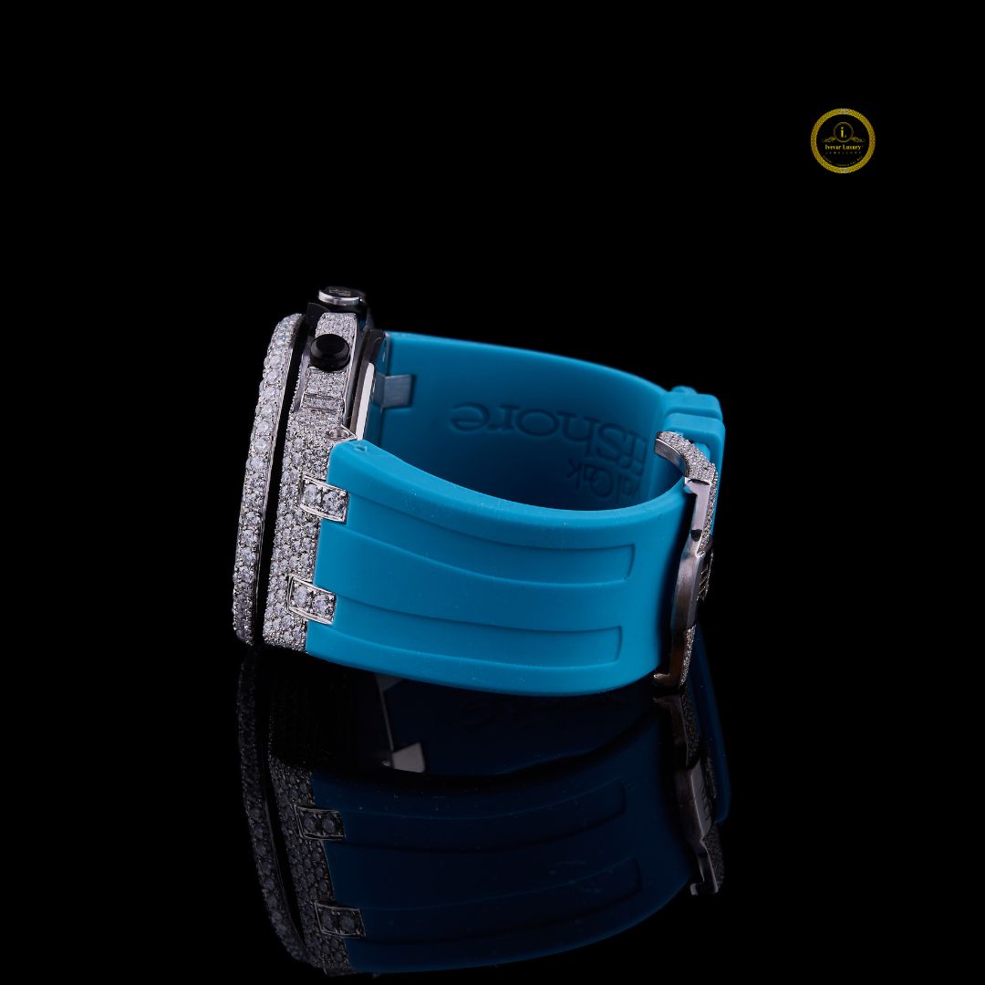 Tiifiny Blue Colour Band With Half Ice Out in Moissonite Diamond by Ivevar Luxury.